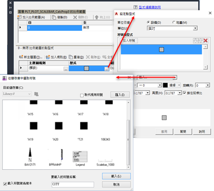 - 在「型式編輯器」中的「點型式 0 - 無限比例範圍」下,在標示為「型式」的欄中按一下「瀏覽」按鈕。如下所示設定參數: