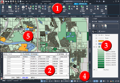 AutoCAD Map 3D 工具集 產品視窗的主要元素