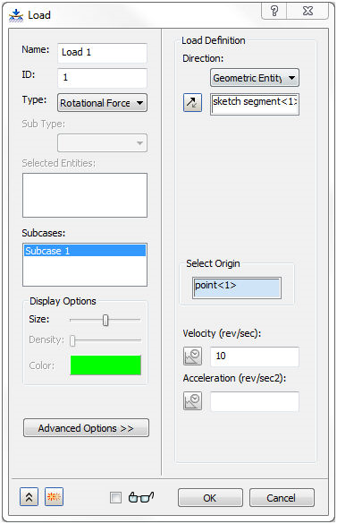 類似於「約束」,您可以拖放「負載」,或按一下滑鼠右鍵並選擇「子案例 - 編輯」,並將其亮顯,以將其包含在「分析」中。