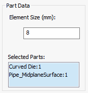 - 對「選取的零件」指定所需的「元素大小」。網格產生器會調整實際的元素大小,沿選取的零件產生整數的元素數目並容納不同的 CAD 特徵大小。