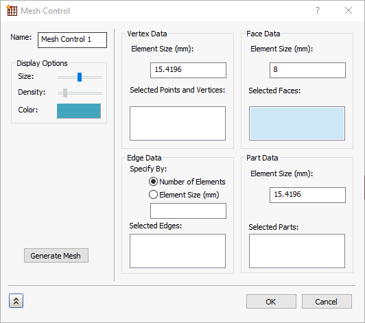 此工具可讓您定義局部元素大小以選取頂點、邊、面或零件。您加入的每個網格控制都列示在瀏覽器 (模型樹) 中的「網格模型」