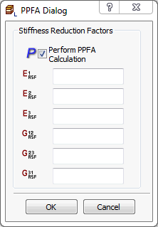 如果「材料類型」是「等向性」、「正交性 2D」和「正交性 3D」,PPFA 資料會有不同方向的 E 和 G 剛性縮減係數。