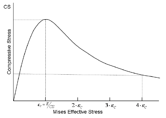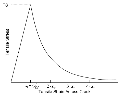 材料的抗拉行為一直到抗拉強度值完全彈性。在正交的主應變方向可形成個別裂痕。發生裂痕之後,拉伸應變的應力應變曲線會變柔和,如圖 1 所示。