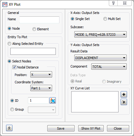 若要使用結果的 XY 出圖,請在 Inventor Nastran 樹狀目錄的 「子案例」下的「XY 出圖」上按一下滑鼠右鍵,然後選取「新建」。請確保您已執行分析 (在 Inventor Nastran 樹狀目錄的 「分析」上按一下滑鼠右鍵,並選取「在 Nastran 中求解」),或載入結果中 (在 Inventor Nastran 樹狀目錄的「分析」上按一下滑鼠右鍵,並選取「載入結果」)。