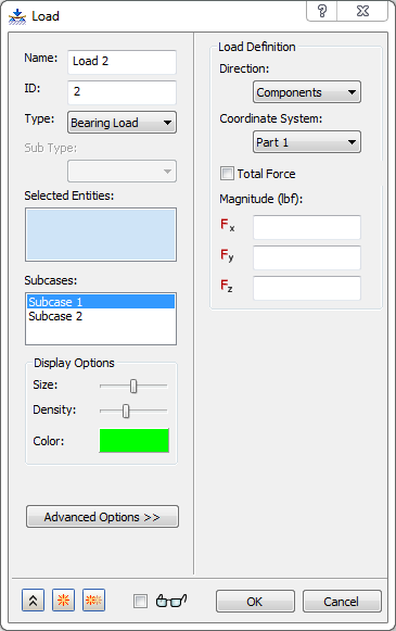 若「類型」設定為「軸承負載」,則對話方塊看起來會如下圖所示。