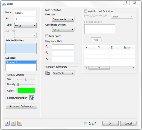 或者,在模型樹中的「負載」上按一下滑鼠右鍵,然後從關聯式功能表中選取「新建」。將顯示以下對話方塊: