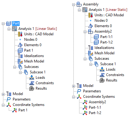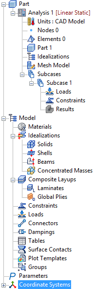 Autodesk Nastran 模型樹為各種建立的有限元素模型圖元提供便利的輪廓視圖。