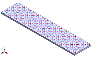 在下方的平面網格模型中,指向頂面右下角的箭頭表示由 (1, 1, 1) 向量投影方法所產生的材料方位符號。