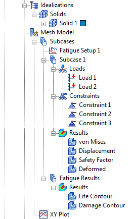 「多軸向疲勞」分析有兩組結果,兩個子案例各有一組。系統會自動載入適用的出圖: