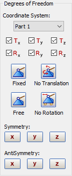 按一下這些按鈕後,就會自動檢查要約束的結構自由度。例如,固定約束會勾選所有方塊,如下圖所示。
