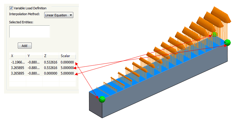 勾選「可變負載定義」方塊。點和頂點可以做為「選取的圖元」,因此在對未來模型建立可變負載分配時,建立參考幾何圖形,可能很有用。