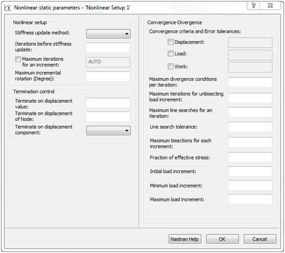 - 初始/最小/最大負載增量:它是在自適應負載增量/收斂方法中用來定義子案例中負載增量的整體上限和下限。初始負載增量會取代使用增量數決定的值。透過 NLPCI 批量資料項目指定弧長方法時,無法套用這些負載增量。