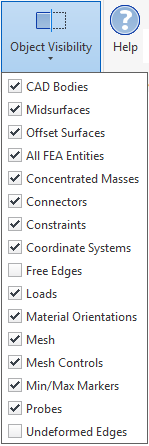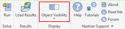 在 Autodesk Inventor Nastran 功能區頁籤的「顯示」面板中按一下「物件可見性」。