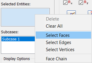「選取的圖元」方塊中有選取篩選可供使用。在選取方塊上按一下滑鼠右鍵後,您將注意到畫面列出「選取面」、「選取邊」和「選取頂點」選項。這些選項可讓您設定篩選,以僅選取面、邊和/或頂點。