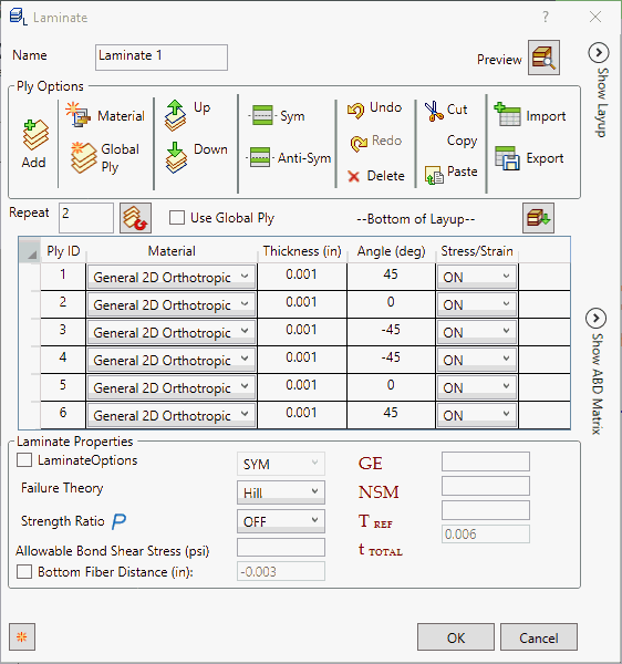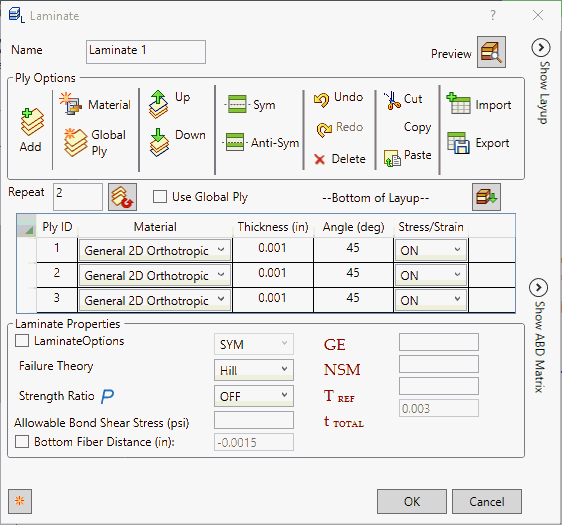 - 失效理論:層失效理論。以下理論是允許的。如果為空,則不會執行失效計算。Hill 設定為預設的失效理論。