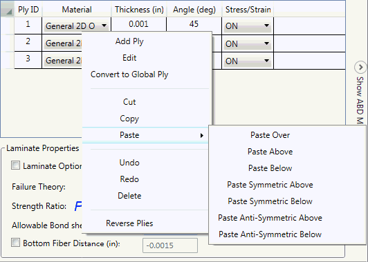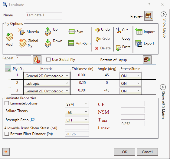 - 材料層合板:可讓您將層從「材料層合板底部」翻轉為「材料層合板頂部」。它可在視覺上翻轉層。匯出的 Nastran 檔案永遠為材料層合板底部格式。
