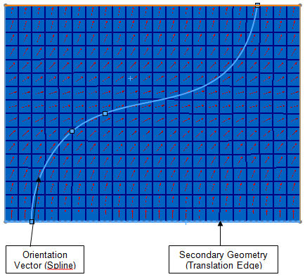 當雲形線曲線通過每個元素的形心時,在該點相切於曲線的方位會指定給元素。