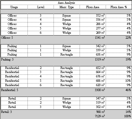 您已設計量體來探究建築的概念設計。您想要針對建築的各樓層進行最符合經濟效益或最具利益之混合使用的分析。