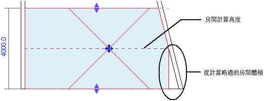 在剖面視圖中,您還可以檢查 Revit 是否從房間的體積計算中刪除房間的某些部分。這可能起因於合併斜牆與對應樓層所定義的計算高度,或是由其他情況所造成。請參閱〈關於房間的計算高度〉和〈可以影響房間體積計算的情況〉。
