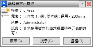 為了在使用工作共用專案時方便意見交流,當請求、授與及拒絕借用元素請求時,小組成員將接收自動通知訊息。