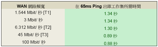 請注意,我們所報告「WAN 網路頻寬」反映網路的實際流量,並非連線等級。外部因素 (例如不相關的串流流量) 可以減少真實世界的可用頻寬,因此我們建議您於典型使用週期期間驗證網路行為。這可透過測量將幾百的 MB 的資料從網路上某一點複製至另一點所需的時間輕鬆達成。(請注意,這必須小心執行,以確保網路壓縮和封包外形不會影響作業的效能。