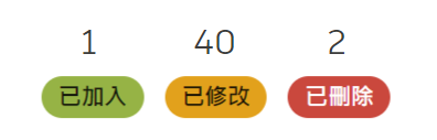 選項板會顯示變更的概觀,分為 3 個品類:已加入、已修改和已刪除的物件。範例如下所示: