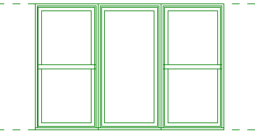 例如,不必從頭開始建立組合窗族群的模型,您可以將「上下拉窗」和「例證 - 固定」族群載入新窗族群,來建立以下的組合窗族群。將固定窗例證放置到組合窗的中心,並在每一邊放置一扇上下拉窗。