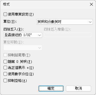 依預設,會選取「使用專案設定」選項。這意味著數值將根據專案中的「單位」設定來顯示。