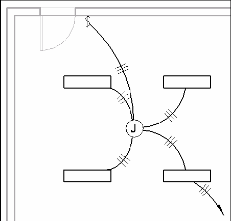 - 接線盒:配線管理裝置,其佈線通常通過裝置繪製。如影像所示,自動產生的佈線分支至接線盒。