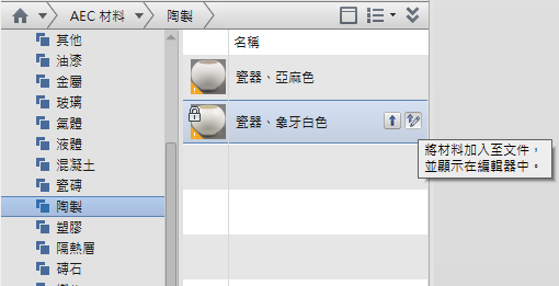 按鈕。此按鈕可將材料從資源庫加入專案材料清單。