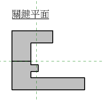 專案的關鍵平面與一般標註族群一起建立。將一般標註放置在需要關鍵平面的圖紙或視圖上。範例族群包含組成建築外形圖的線和連接至可見性參數的「填滿區域」,因此不同的關鍵平面描影部分可開啟和關閉。