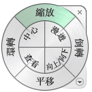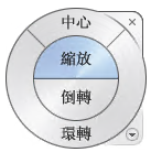 註: 有別於大檢視物件操控盤上的「縮放」工具,小檢視物件操控盤和完整導覽操控盤上的「縮放」工具並不受約束。