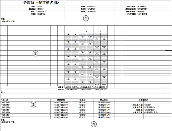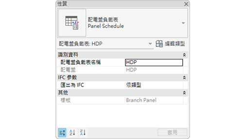 「配電盤負載表」在「識別資料」品類下會顯示「配電盤名稱」。