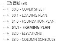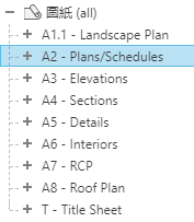 將圖紙加入專案時,圖紙會列示於專案瀏覽器中「圖紙 (全部)」之下。