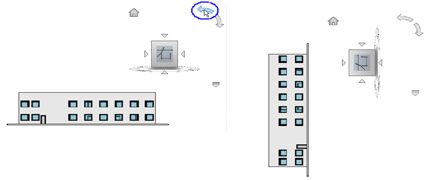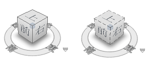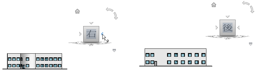 當您從其中一個面視圖檢視模型時,ViewCube 附近會顯示兩個轉動箭頭按鈕。使用轉動箭頭可將目前視圖繞著視圖中心順時鐘或逆時鐘旋轉 90度。
