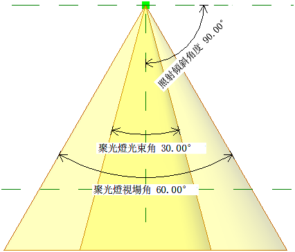 定義聚光燈時,您可指定樑、欄位和傾斜的角度。