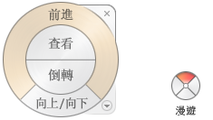 註: 顯示小操控盤時,您可以按住滑鼠中按鈕來平移,捲動操控盤按鈕來縮放,以及按住 Shift 鍵同時按住滑鼠中按鈕來環轉模型。