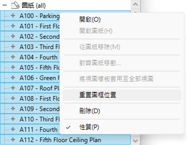 在專案瀏覽器中選取多個圖框實體或多張圖紙時,可以使用此指令。