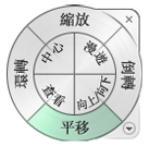 使用 2D 導覽操控盤可存取 2D 導覽工具,當您的滑鼠沒有滾輪時,也可以使用 2D 導覽操控盤。