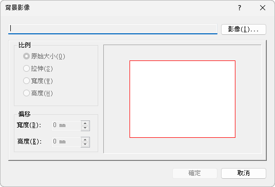 - 在「背景影像」對話方塊中,指定「比例」和「偏移」,然後按一下「確定」。