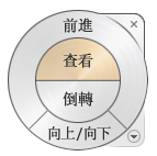 | 使用「查看」工具環視 | 顯示其中一個完整導覽操控盤或小導覽建築操控盤。按住「查看」楔形塊按鈕。拖曳滑鼠以變更您查看的方向。放開滑鼠按鍵可返回操控盤。 |