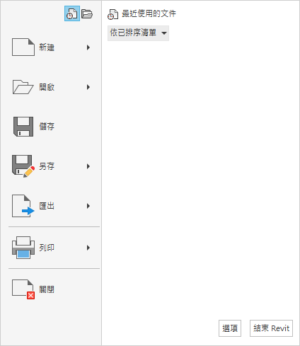 「最近使用的文件」可以查看最近開啟的檔案清單。使用下拉式清單可變更最近使用的文件之排序順序。使用圖釘可將文件一直保留在清單中,無論最近何時開啟它們。