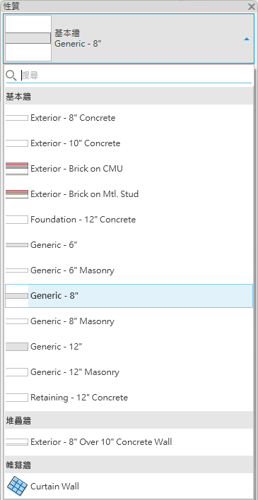 如果用於放置元素的工具處於作用中,或在繪圖區域中選取了相同類型的元素,則性質選項板的頂端會顯示類型選取器。