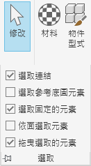 選取固定的元素當您想要選取現地固定的元素,且無法移動時,請啟用「選取固定的元素」選項。