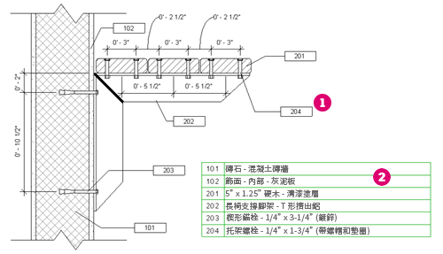 ,指出每個數字所指稱的內容。這可以將標註所需的大量文字全部放在一個位置,因此在需要時比較容易進行手寫和/或變更。
