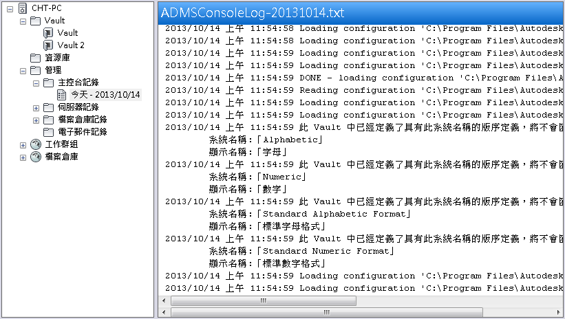 在 ADMS Console 中檢視主控台、伺服器、檔案倉庫以及電子郵件記錄。