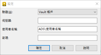 「Vault 帳戶」:需要 Vault 特定的使用者名稱與密碼。