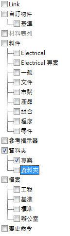 料件 | 使用料件關聯,以建立自訂料件性質。自訂性質可能會限制為特定類型的料件子類別,例如零件或文件。 |