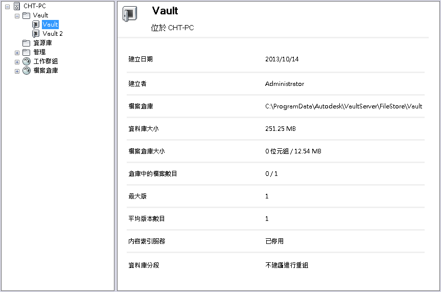 在 ADMS Console 導覽窗格中,從「Vault」資料夾中選取 Vault。