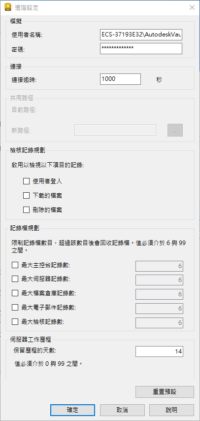 規劃要保留在 Vault 伺服器上的主控台、伺服器和電子郵件記錄數。